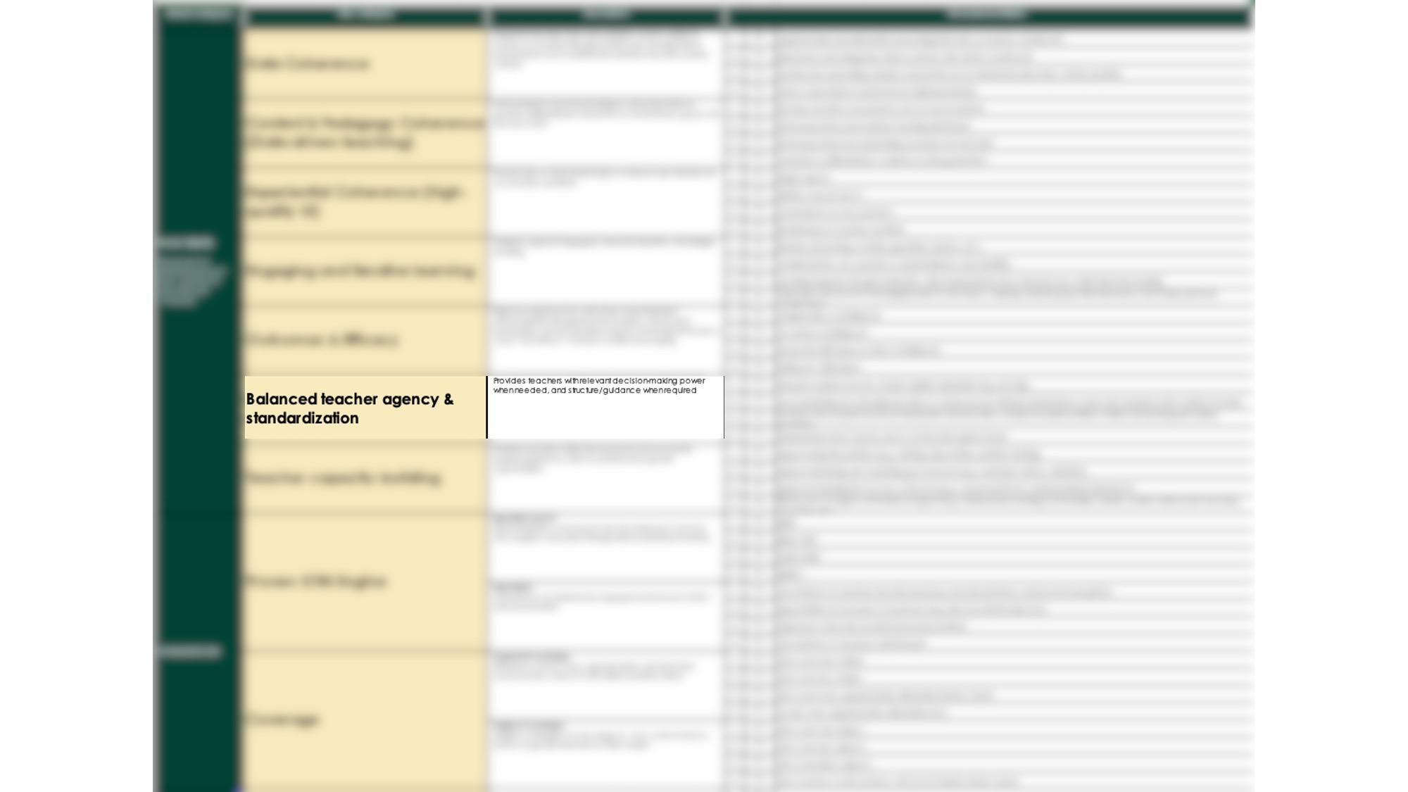 However, that does not mean there should be no limits to teacher agency. While high-performing teachers may know how to make the best of it, others might make decisions misaligned with learning science or state standards, potentially damaging student learning. Scholars caution that teacher agency is most effective when paired with strong professional support, clear frameworks, and collaborative school cultures (Vangrieken et al. 2017), as excessive autonomy without guidance is likely to lead to inconsistencies and inequitable learning experiences. Our research also suggested that teachers make better decisions when they discuss and adapt their teaching with their peers, especially through structured communities of practice. What teachers need, in other words, is the right combination of support and agency that allows them to deliver effective lessons while also honing their craft as teachers.